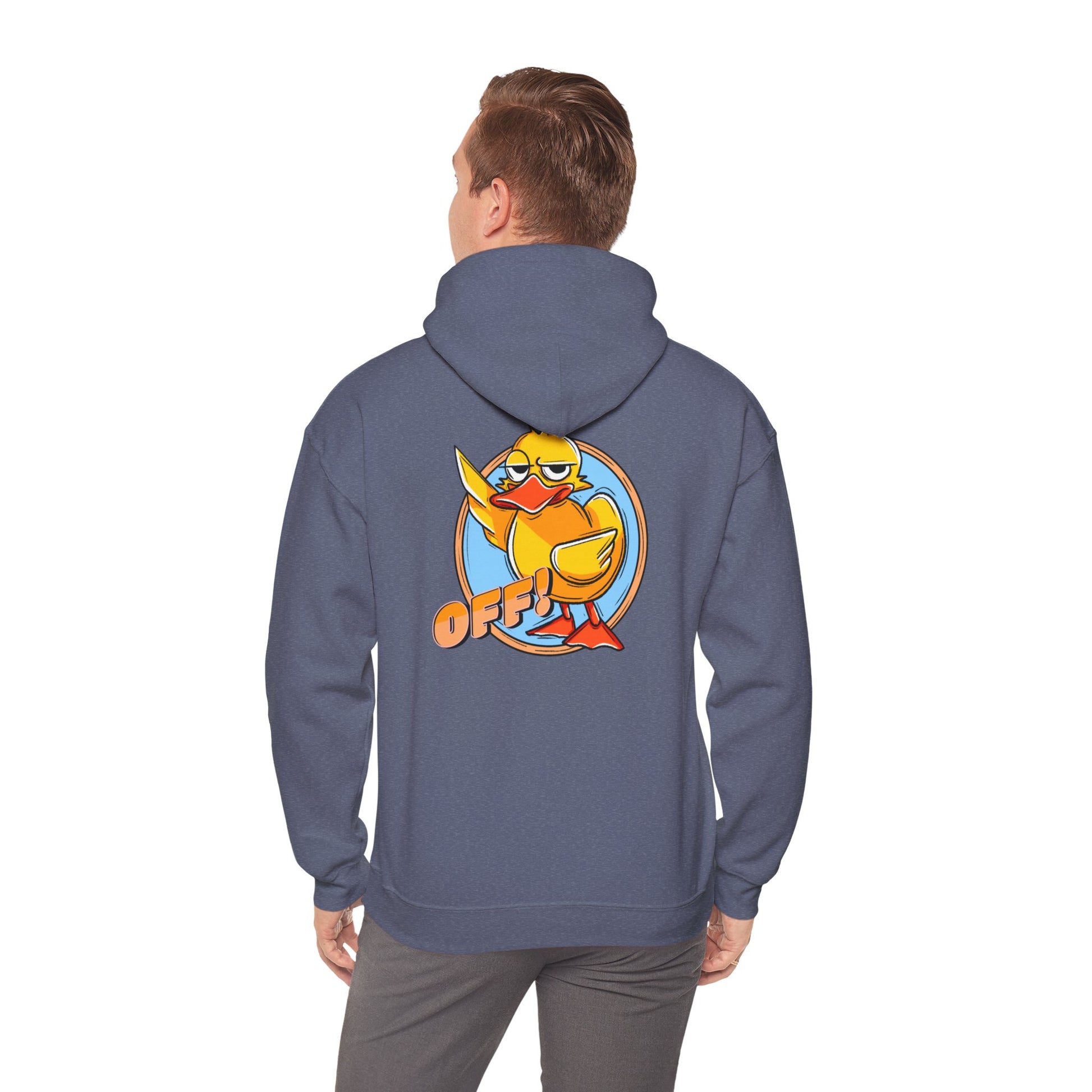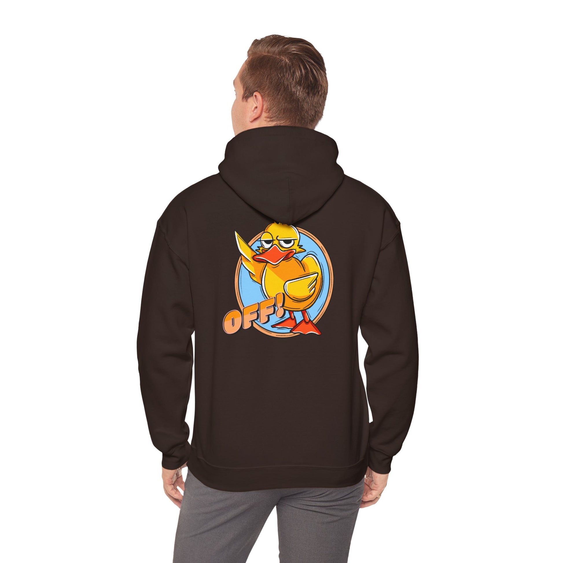 Take your attitude to the next level with our "Duck Off!" hoodie! Featuring a feisty rubber duck giving the wing and a bold "OFF!" message, this hoodie is all about making a statement with a splash of humor. Whether you're heading out or just chilling at home, this design will keep you warm and stylish while letting everyone know not to mess with you—duck style!