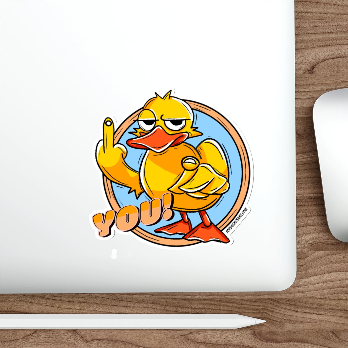 Introducing the "Duck You!" Die-Cut Stickers – the perfect way to add a splash of attitude to anything you own! These high-quality, weatherproof stickers feature our rebellious rubber duck flipping the bird, paired with the bold "YOU!" text. Ideal for decorating your laptop, water bottle, skateboard, or car, these stickers are designed to stick around and make a statement wherever they go. Express your playful, edgy side with these fun and durable stickers that are sure to get a reaction. Stick it, flaunt it, and let everyone know exactly how you feel – with a wink and a quack!
