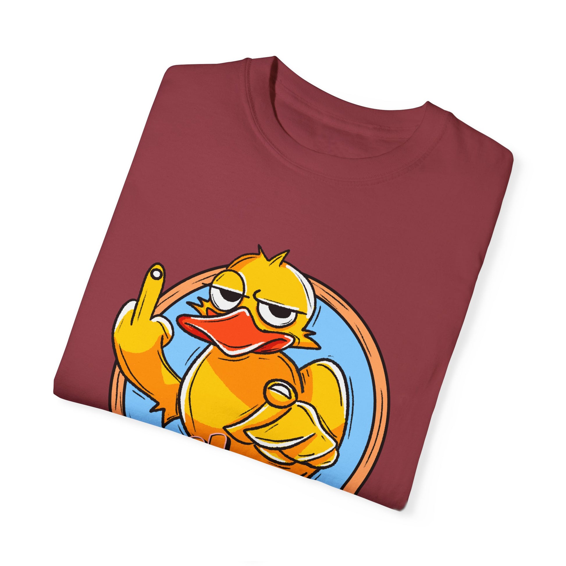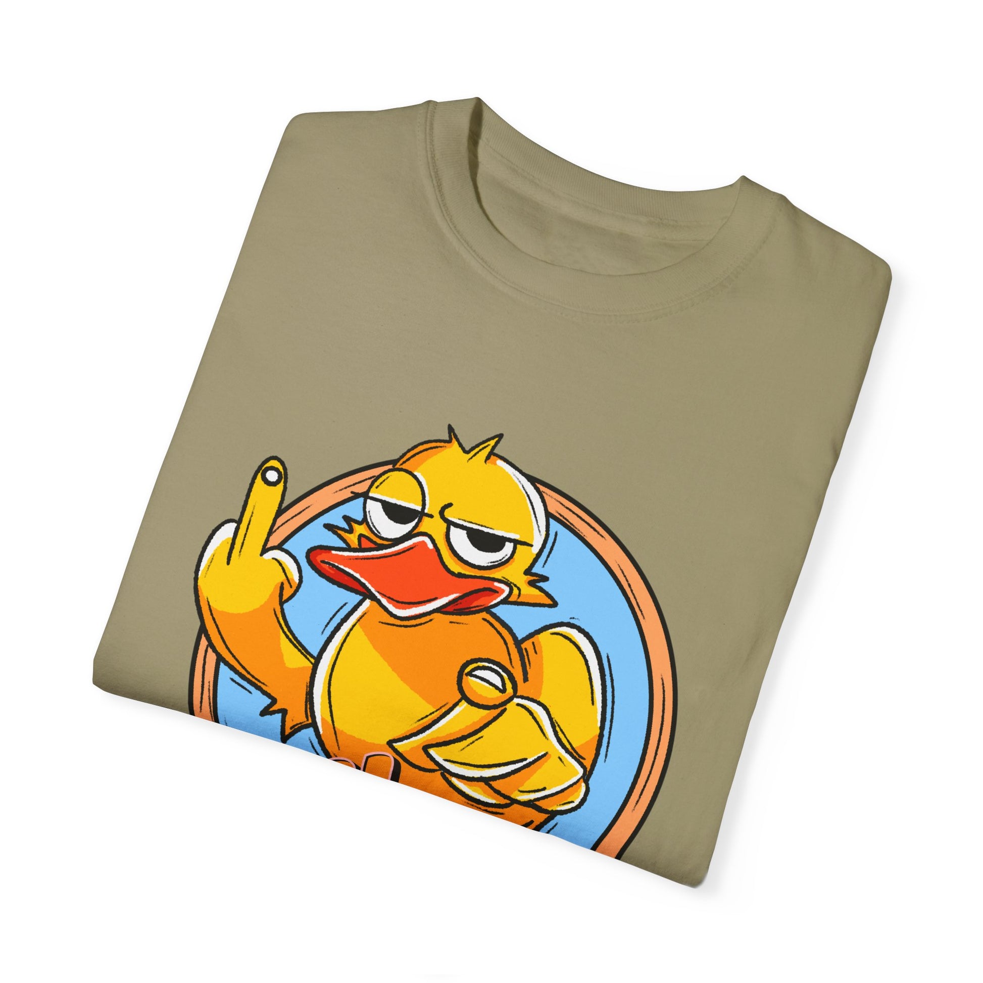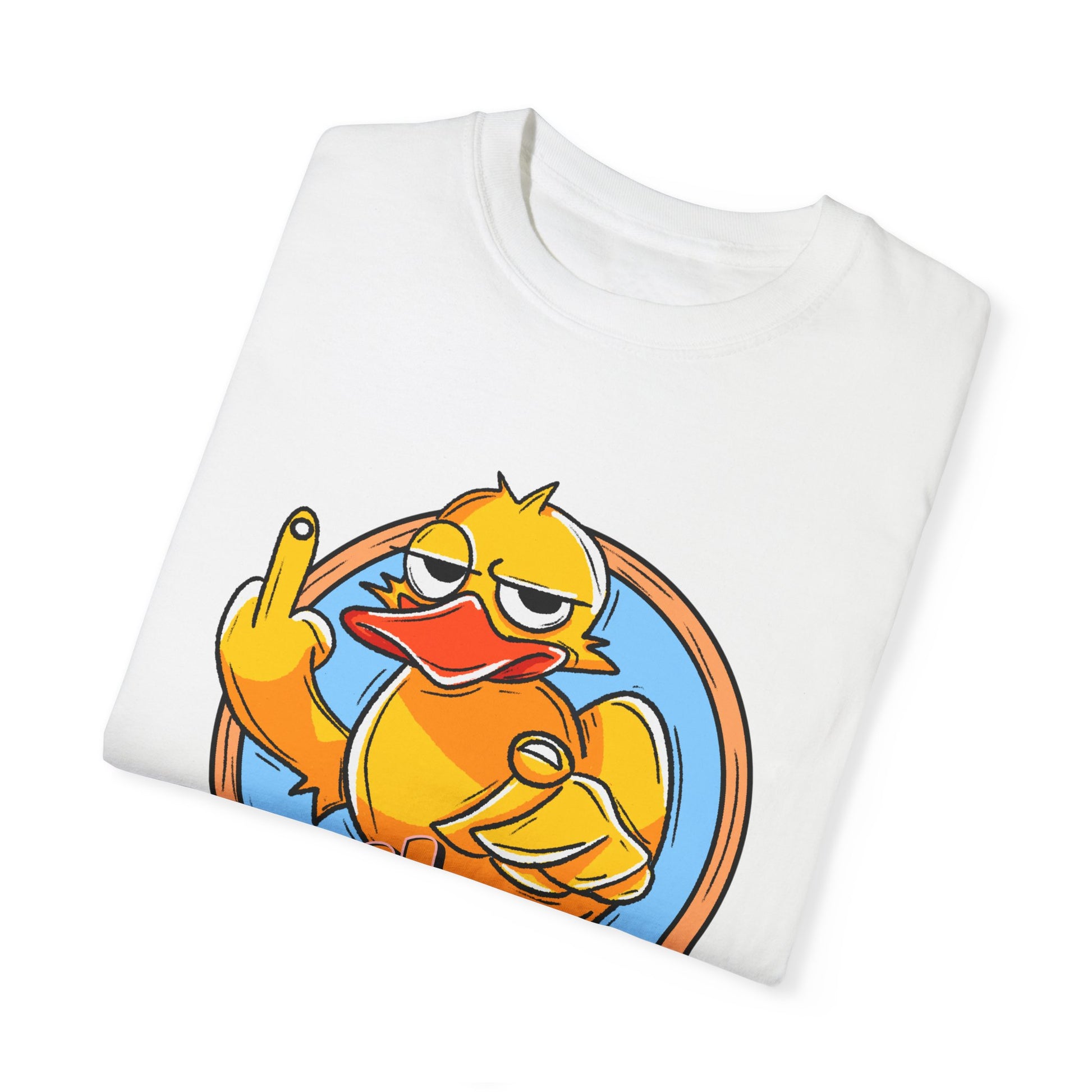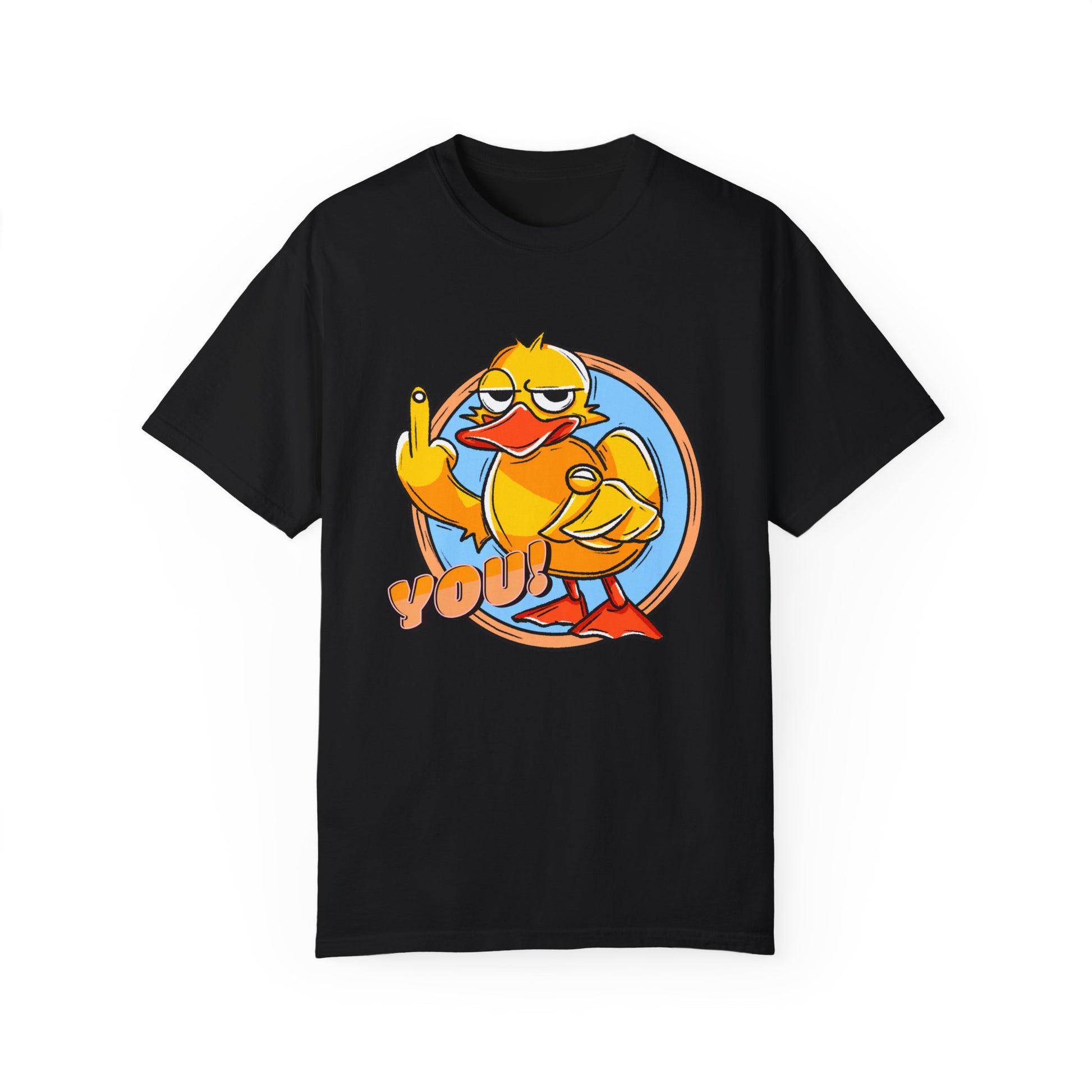 Introducing the "Duck You!" T-shirt – the ultimate blend of sass and humor for those who aren't afraid to ruffle a few feathers. This bold design features our signature rubber duck unapologetically flipping the bird, with a smug expression that says it all. The playful yet edgy text "YOU!" completes the look, making this tee perfect for anyone with a cheeky sense of humor. Whether you're making a statement or just having a bit of fun, this shirt is sure to turn heads and get a few laughs. Wear it loud, wear it proud – because sometimes, you just have to say "Duck You!"