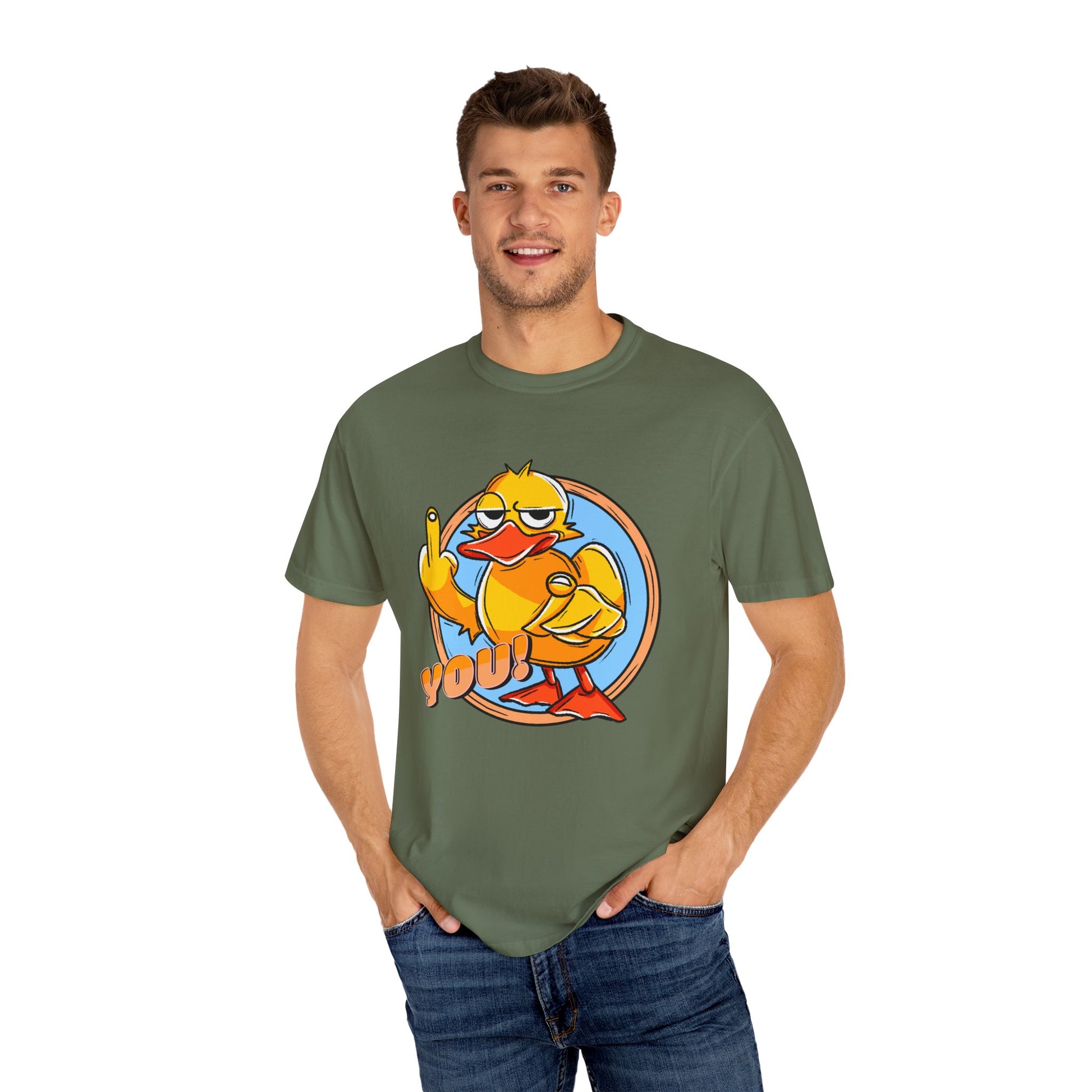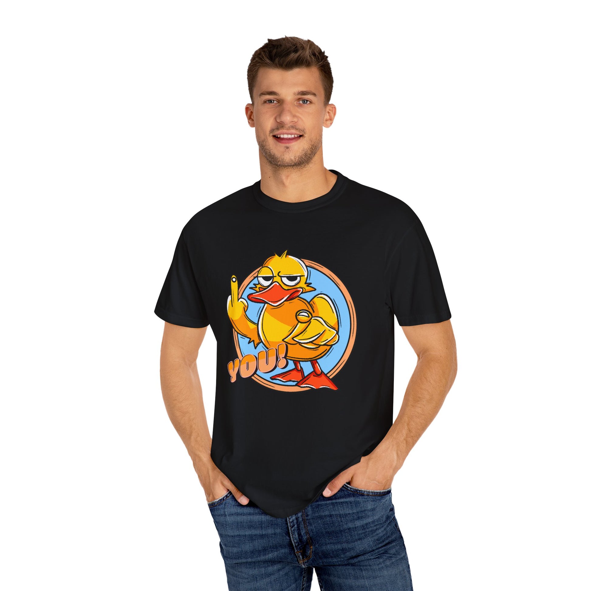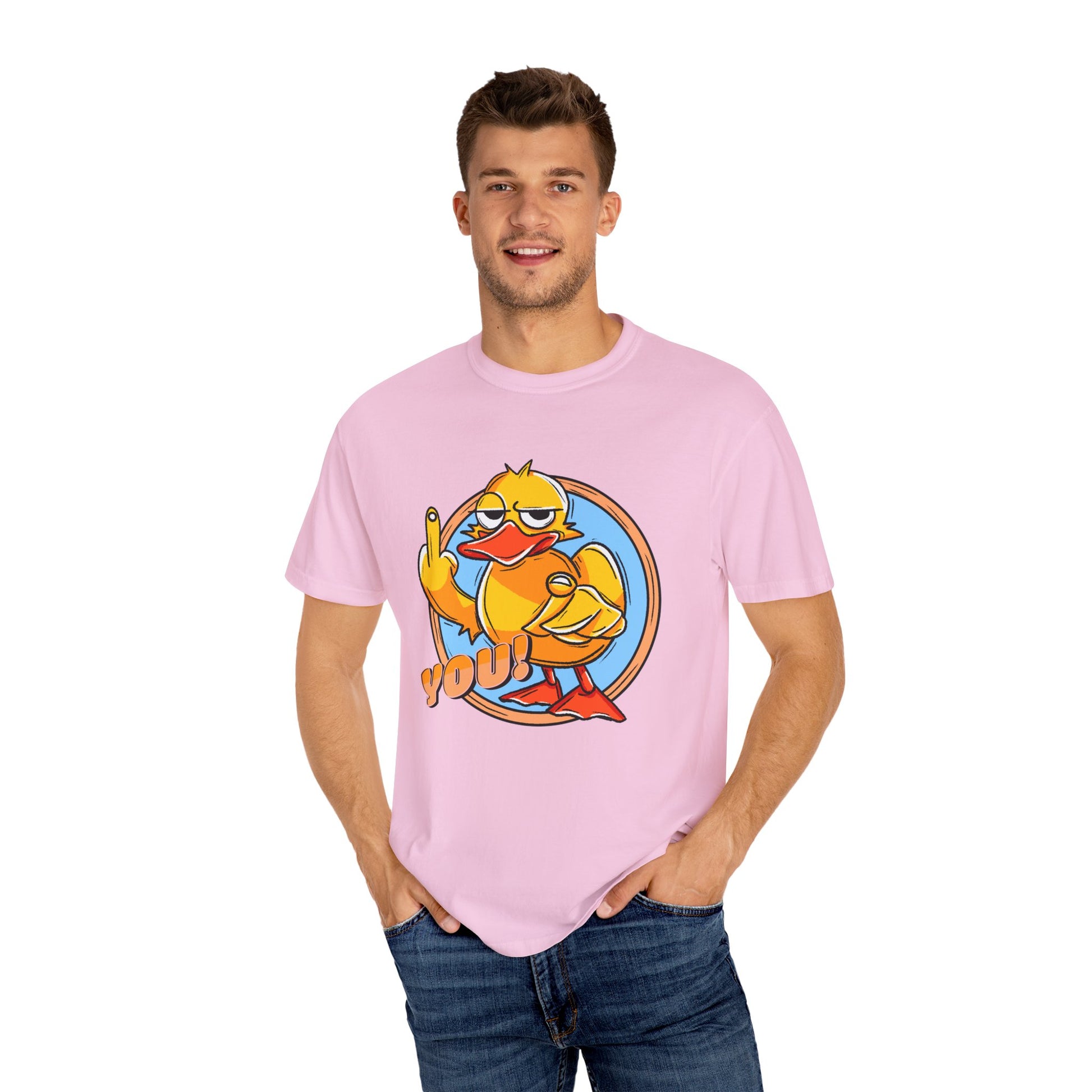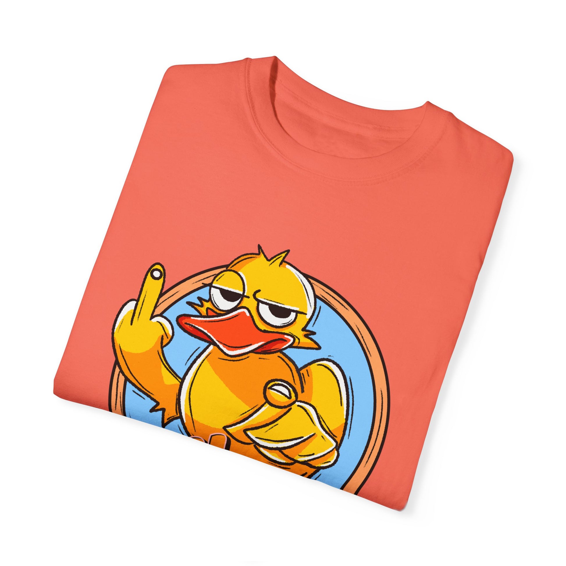 Introducing the "Duck You!" T-shirt – the ultimate blend of sass and humor for those who aren't afraid to ruffle a few feathers. This bold design features our signature rubber duck unapologetically flipping the bird, with a smug expression that says it all. The playful yet edgy text "YOU!" completes the look, making this tee perfect for anyone with a cheeky sense of humor. Whether you're making a statement or just having a bit of fun, this shirt is sure to turn heads and get a few laughs. Wear it loud, wear it proud – because sometimes, you just have to say "Duck You!"