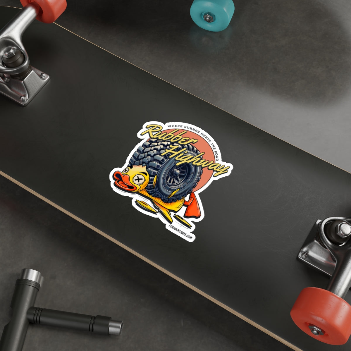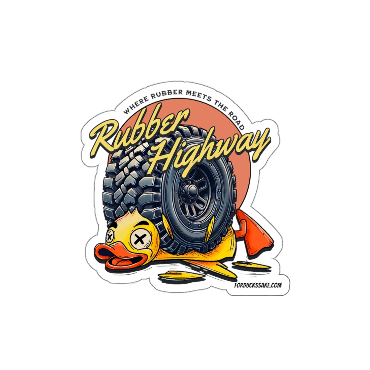 Add a splash of off-road humor to your gear with the Rubber Highway Die-Cut Sticker! Perfect for adventurous souls who love to express their personality, this sticker features our bold and quirky design of a flattened rubber duck under the tread of a 4x4 tire. Whether you’re decorating your laptop, water bottle, toolbox, or even your 4x4 itself, this sticker is a fun way to showcase your love for all things rugged and wild.