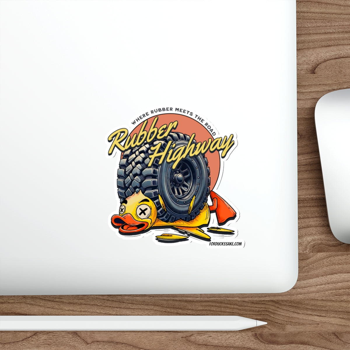 Made from durable, weatherproof vinyl, this die-cut sticker is built to withstand the elements—just like your off-road vehicle. The precise cut around the design ensures a clean look, making it easy to apply on any surface. With its vibrant colors and high-quality finish, the Rubber Highway sticker is the perfect way to personalize your gear with a touch of off-road flair..: Material: water-resistant vinyl