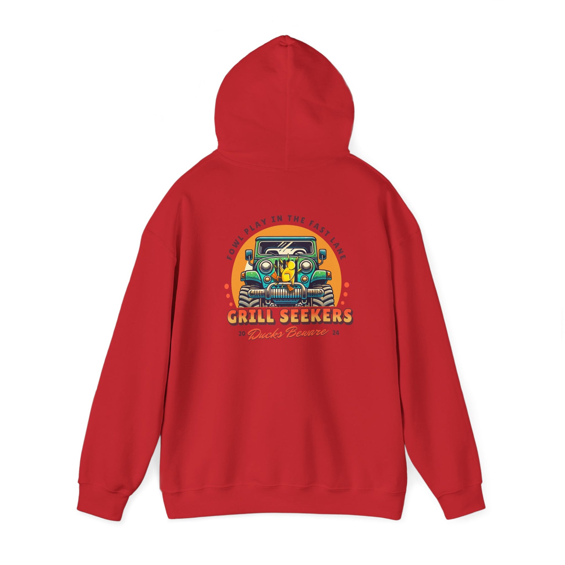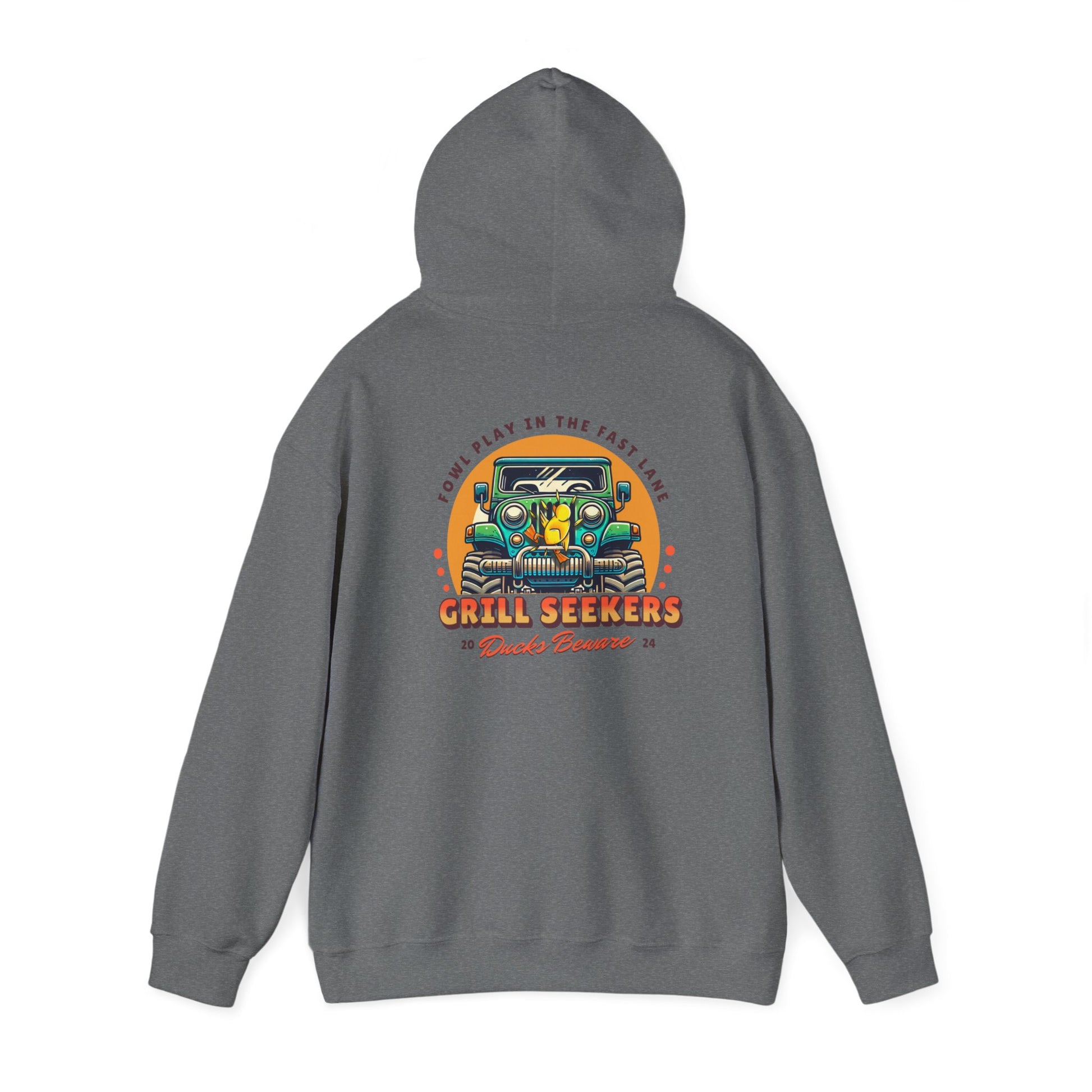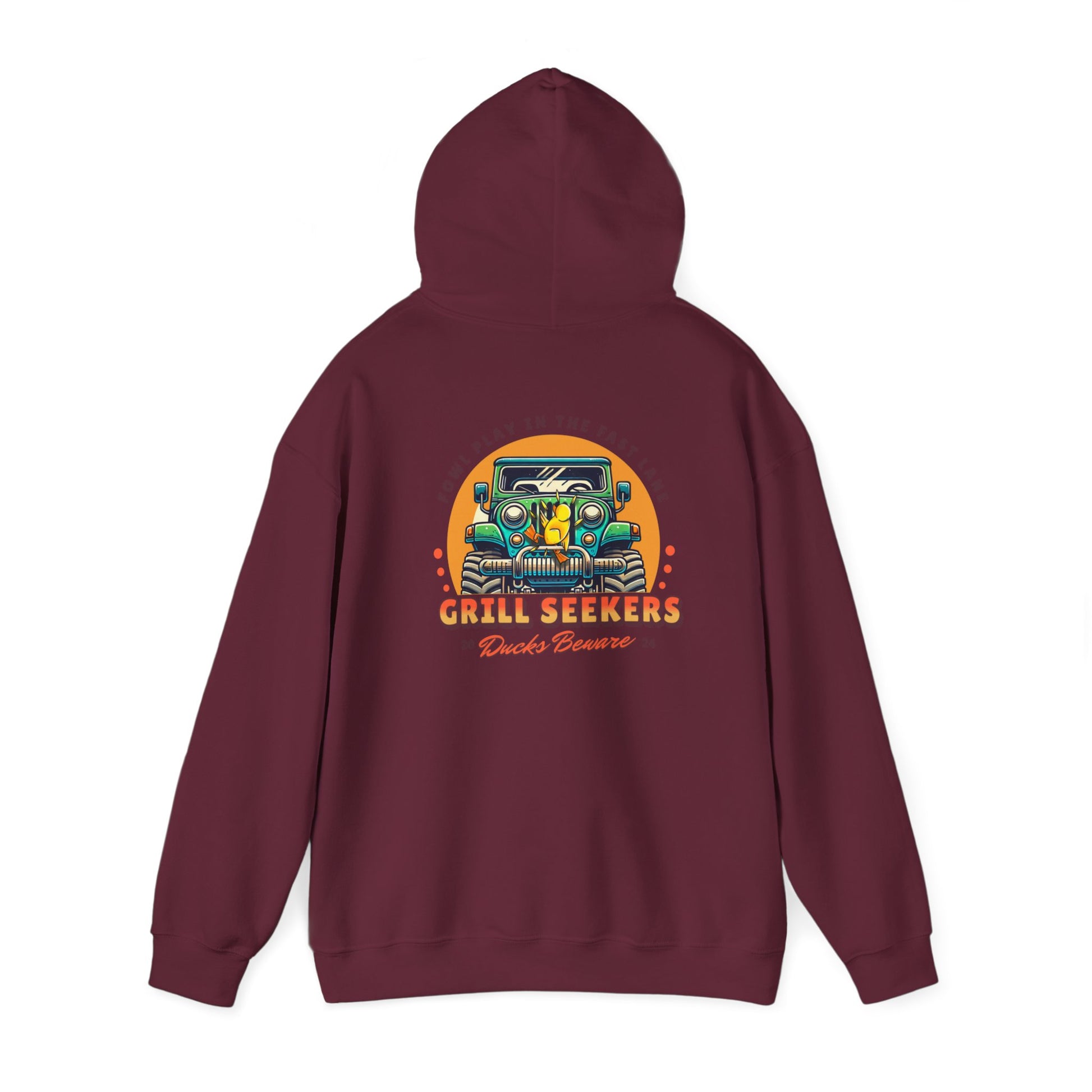 Whether you’re a dedicated off-roader, a Jeep lover, or someone who enjoys a bit of playful "fowl play," this hoodie is a must-have addition to your wardrobe. Perfect for outdoor adventures, weekend getaways, or simply showing off your Jeep pride, the "Grill Seekers: Ducks Beware" Hoodie is ready to roll whenever you are.