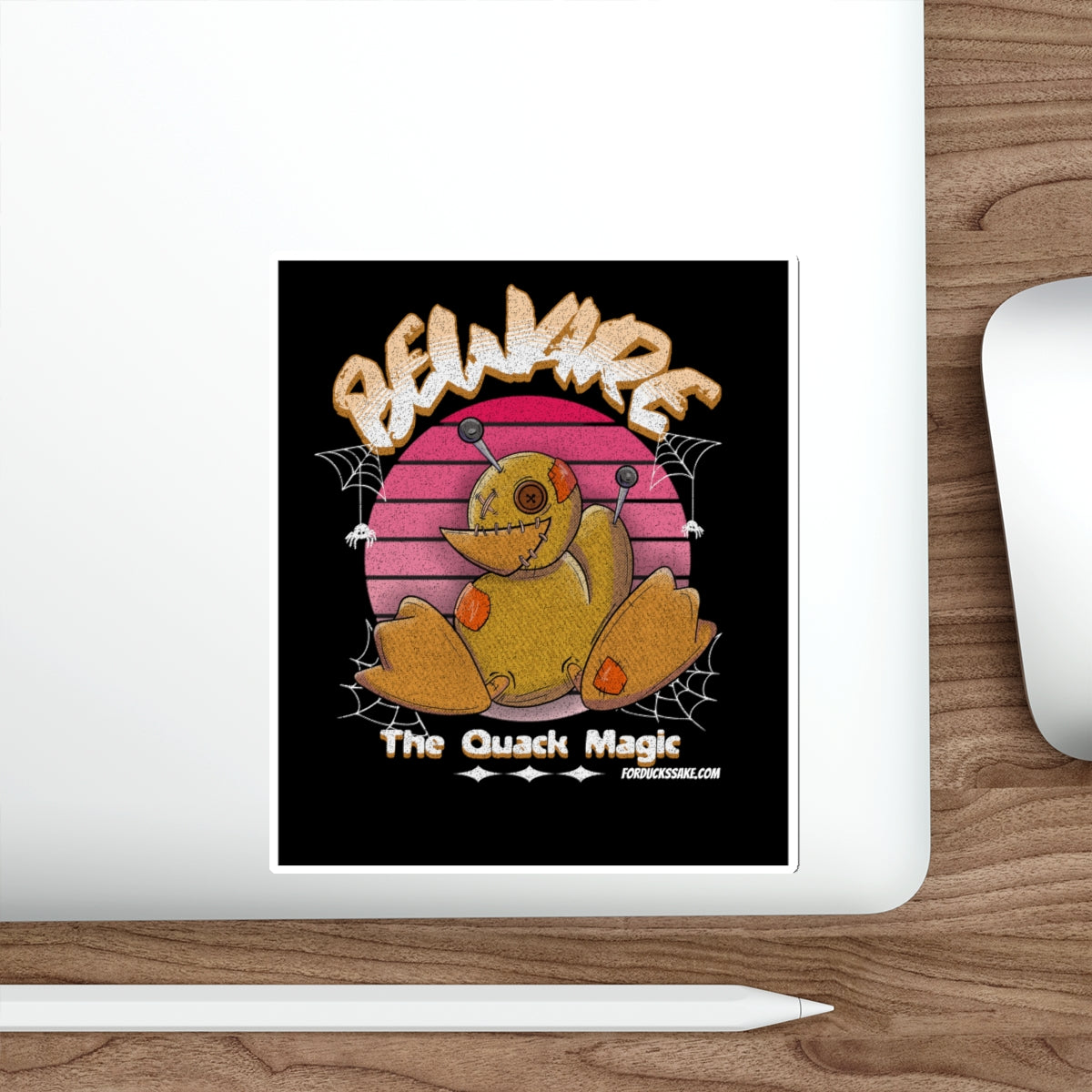 Add a touch of spooky fun to your belongings with our "Beware The Quack Magic" sticker! Featuring a quirky, voodoo-style rubber duck with its charmingly eerie vibe, this sticker is perfect for those who love a mix of the mysterious and playful. The bold "Beware The Quack Magic" slogan adds an extra layer of fun, making it a great conversation starter wherever you stick it.