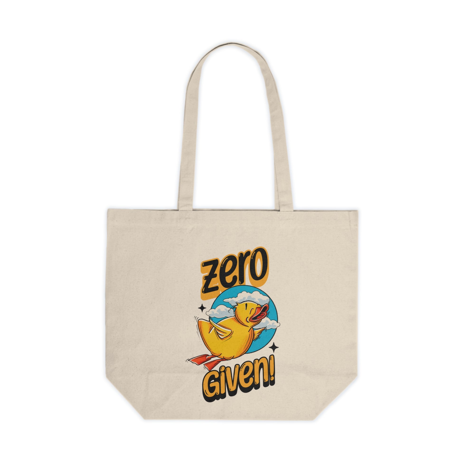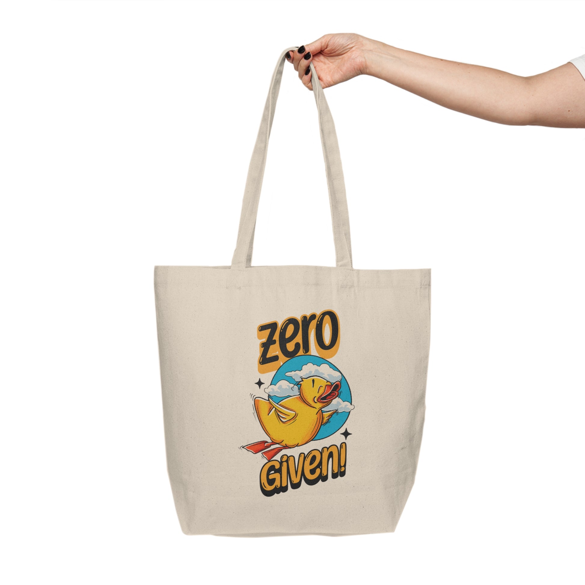 Carry your essentials with a side of sass using the "Zero Given" rubber duck canvas tote! This stylish and durable tote bag features a playful design of a fearless rubber duck soaring through the sky, proudly embracing the "Zero Given" attitude. Perfect for those who love a bit of humor and aren’t afraid to show their carefree side, this tote is ideal for everything from grocery runs to beach days or casual outings.